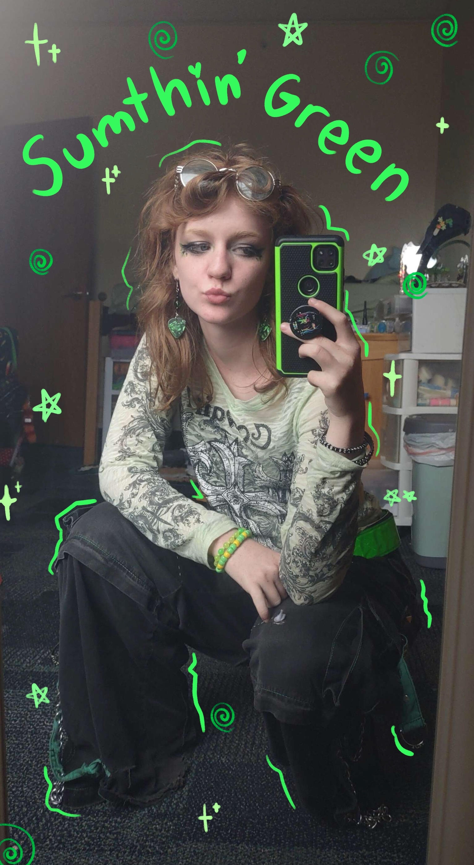 Howdy! I'm Lauren, a digital and traditional artist and owner of Sumthin Green. I'm majoring in art education at the University of Northern Colorado. I specialize in character design and illustration, and spend my free time making arts and crafts of all kinds.Sumthin Green was started in May, 2025. I only planned on selling crochet pieces, then expanded my work to jewelry, stickers, prints, and other crafts.Sumthin Green is committed to bringing a little more color and personality to everyday things. Whether that's in a decoration for your car, an accessory to your outfit, or piece of art on your wall, my goal is to bring more fun to your daily life in both simple and unconventional ways.